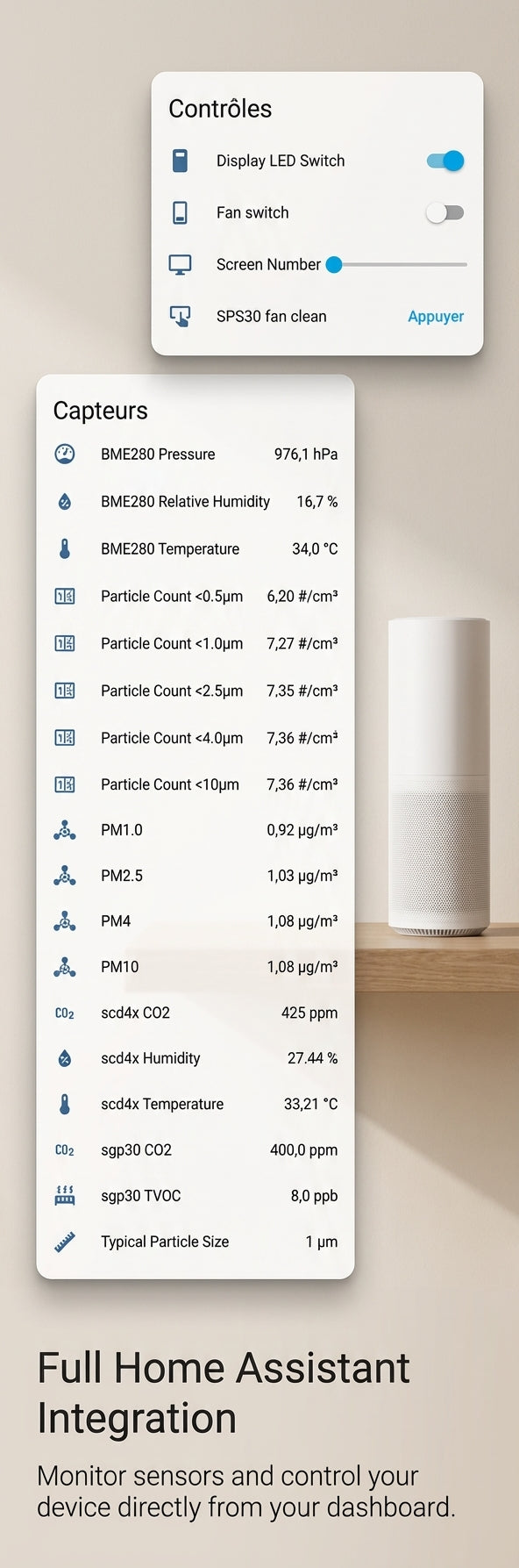 This device integrates professional-grade sensors and is fully compatible with ESPHome and Home Assistant, allowing seamless integration into your smart home system.